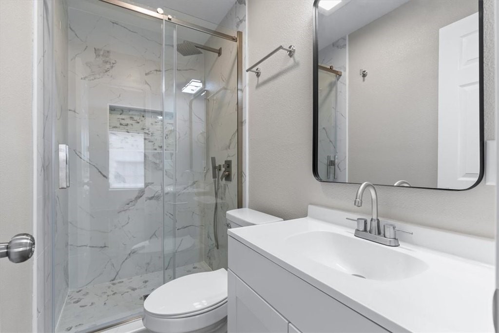 Family home with full remodel with a new roof, new HVAC, new flooring everywhere, new fresh paint splashed on all surfaces, new hardware and new lighting throughout is just the start. Open living room provides space to sprawl and leads to a great flex space that could be dining area, office or play space. Brand new kitchen has modern white cabinets, new granite, new subway tile backsplash and stainless appliances. Laundry room has washer and dryer. Down the hall you will find the primary bedroom with full ensuite. Two more bedrooms and a full bath is perfect for the kids. The garage has been converted to a complete second living space, perfect as a teenagers living space or an exceptional Air BNB with own private entrance. This space is set up like a second home with a both a living and sleeping area with brand new LVP flooring. Also features a brand new full bathroom, new big walk-in-closet and new full kitchen truly making this a perfect added dwelling. New fenced flat backyard and complete rehab list attached.